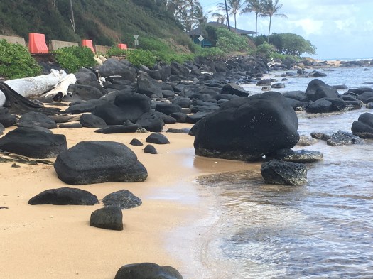 Lava boulders at ‘Aliomanu Beach, north of Anahola Beach