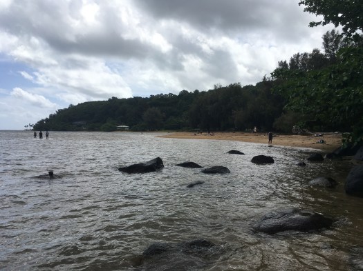 This is my first time back to Hawaii in 20 years, so I am hoping to get around as much of Kauai as possible. But road closures on the North Shore — caused by a landslide at Hanalei — create enough traffic backups to keep me from using precious time trying to reach the “end of the road” on the northwest part of the island. Instead I focus on hitting popular snorkeling spots on three sides of the island. First I am happy to find good snorkeling at Lydgate Beach Park to the east. I find calm swimming conditions but murky water at beautiful Anini Beach on the north side, and Salt Pond Beach Park on the south side.