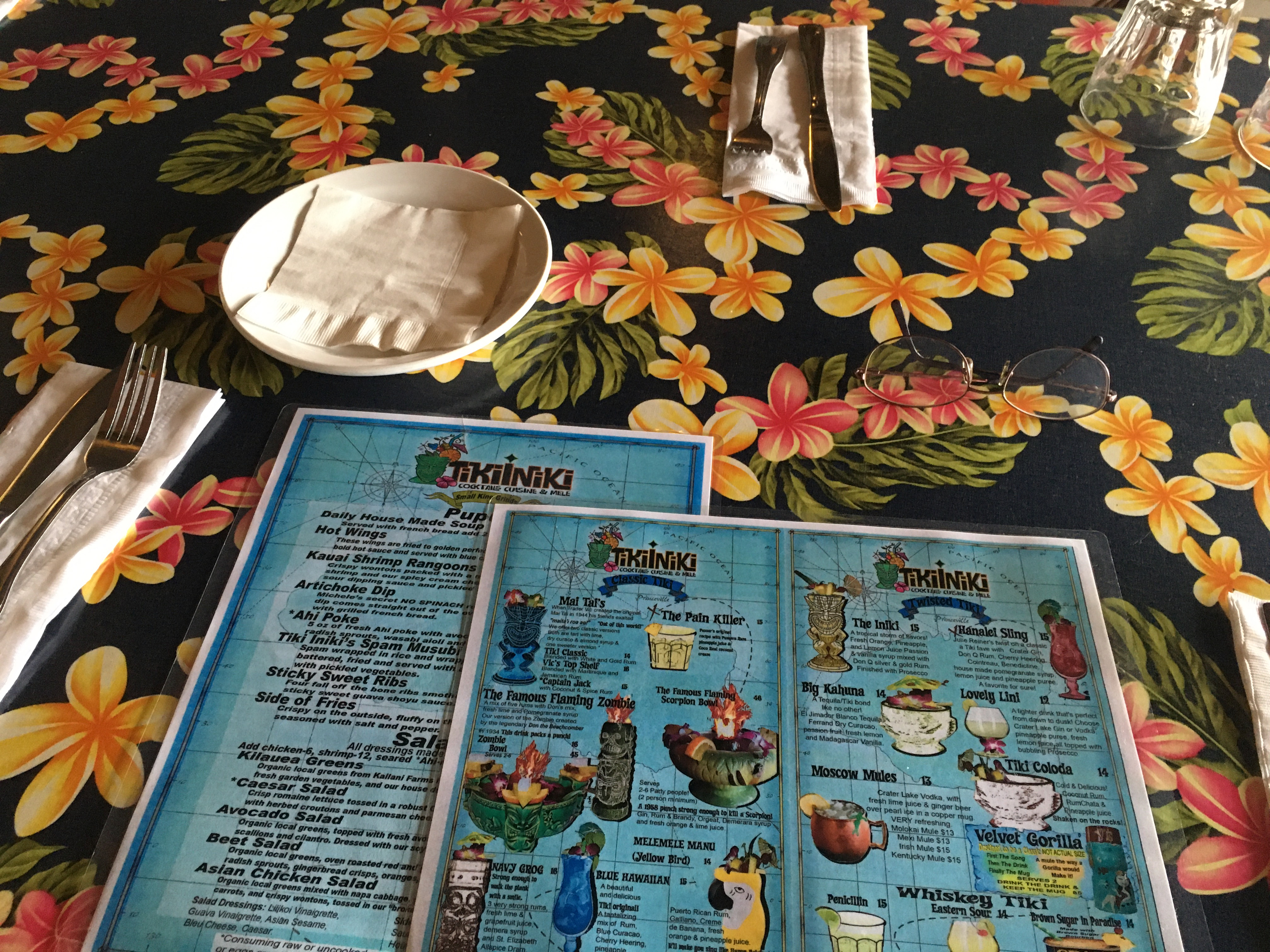 Tiki Iniki’s colorful menus feature plenty of aloha.