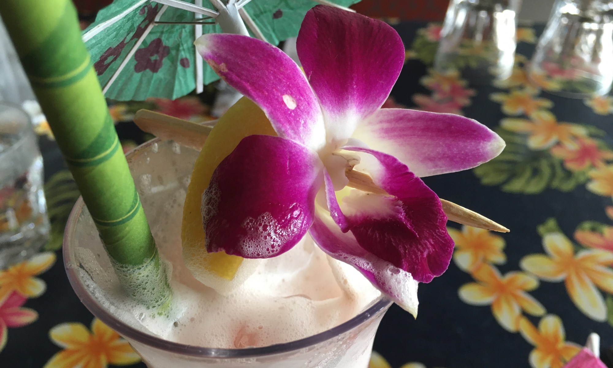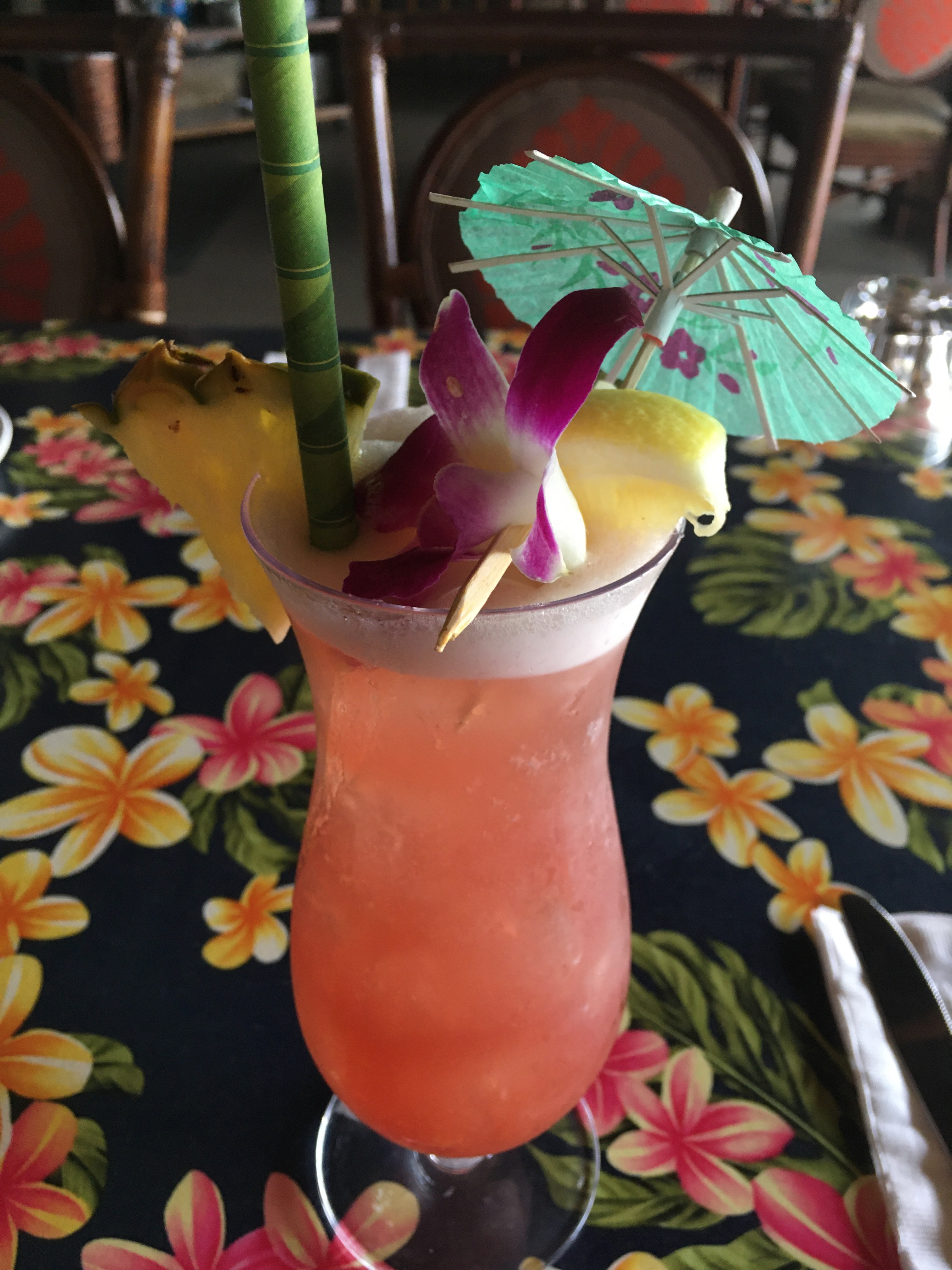 It is still the morning but I am in Hawaii, so I have no hesitation ordering the Hanalei Sling, which is beautiful, delightful and exotically tastier than your run-of-the-mill Singapore Sling (I want another one but, damn … I am here solo and I’m driving).