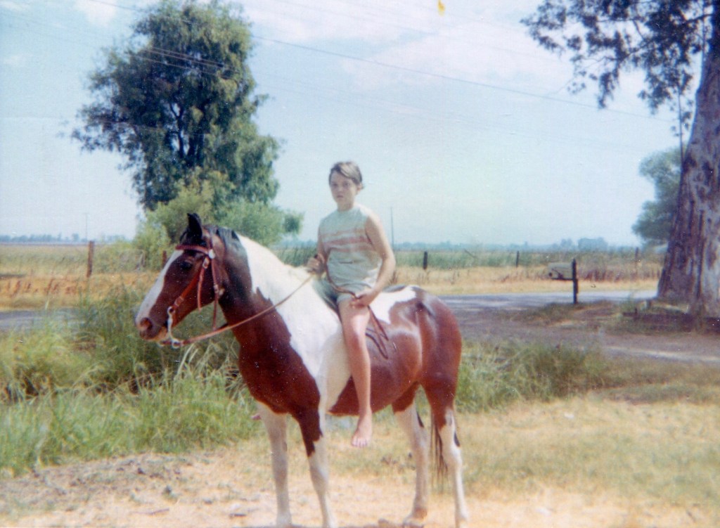 In junior high (she attended Our Lady of Mercy School in Merced) she took part in 4-H, raising a sheep or two as her projects. She liked horses, and she seemed like a natural to ride them with her gentle, caring nature. She helped take care of Lady, a Quarter horse we had on the farm, when she was a preteen.