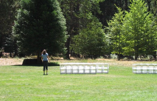 Lilly explores the grounds of the Ahwahnee Hotel, where a wedding was being set up.