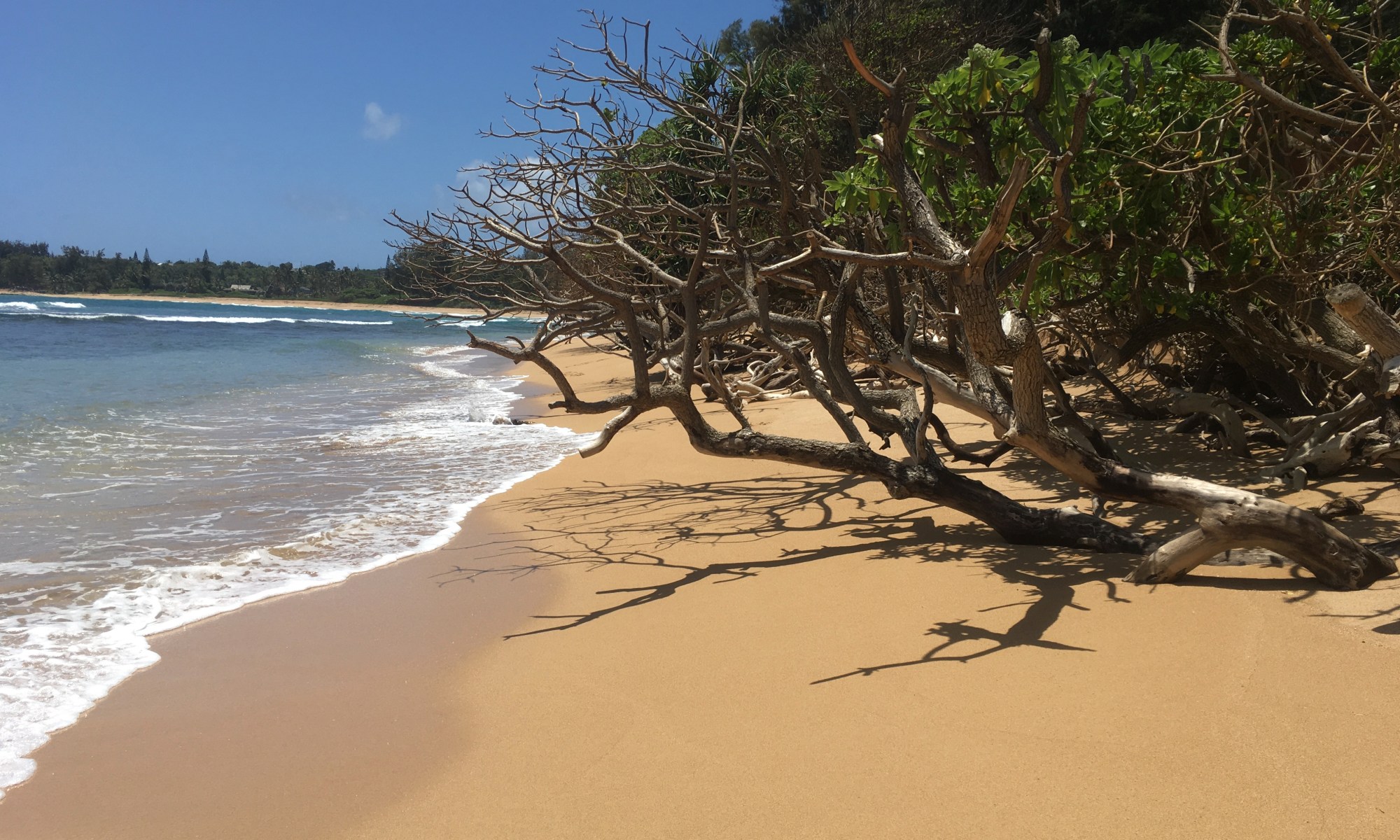 Southeastwardly view on the beach. Could this log be a navigational tool?