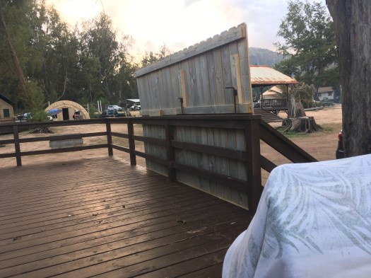Yurt deck with privacy wall