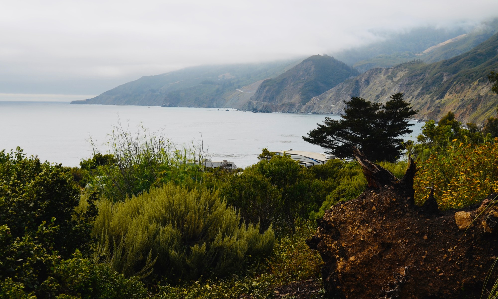 I spent two nights last week at Kirk Creek Campground, which overlooks the Pacific Ocean on a bluff between Lucia and Gorda. Beautiful views, and a sweet hike from the campground down to the ocean along the little trail that runs alongside Kirk Creek.